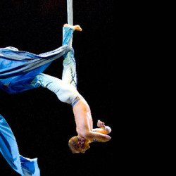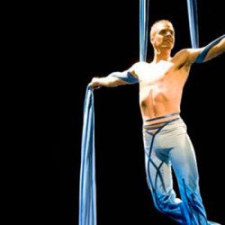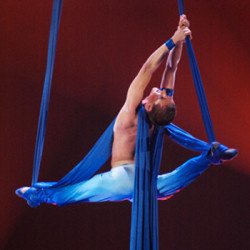 Cet artiste présente depuis maintenant dix ans une vraie performance aux Tissus Aériens, discipline rarement présentée par un homme. Enroulé dans son drap à plus de 5 mètres du sol, l’artiste se joue de l’apesanteur sur une thématique musicale envoûtante. L’esthétisme de ses mouvements pleins de grâce allié à sa plastique divine font de ce spectacle une véritable œuvre d’art.