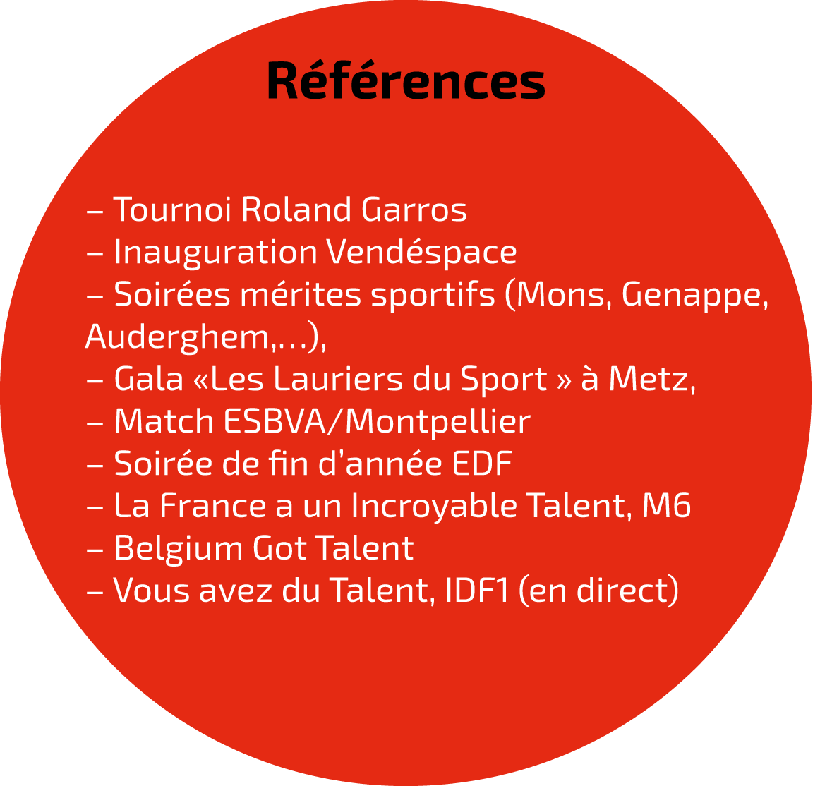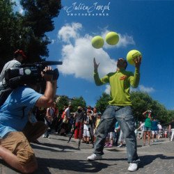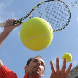 L’artiste que nous vous proposons présente un concept inédit de tennis artistique. Il donne l’impression de ne faire qu’un avec les balles, il mêle jonglage et acrobaties, que ce soit avec les mains, les pieds ou encore la tête.